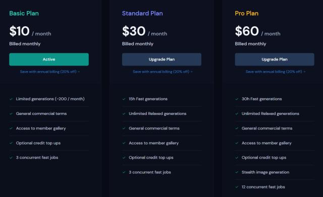 目前Midjourney的定价