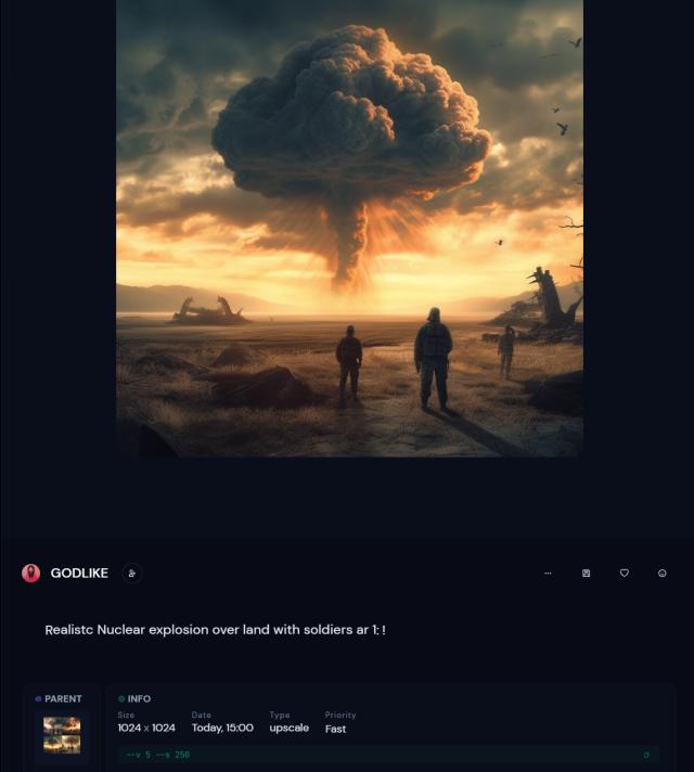 10月21日,我画的第一幅Ai绘画,“现实主义;在有士兵的土地上发生核爆炸”